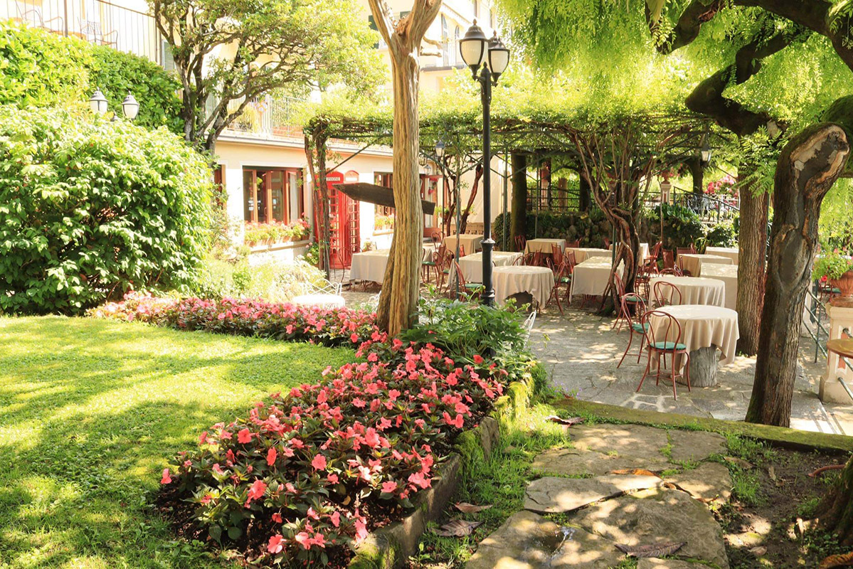 During the summer season is possible to taste your meals in the wonderful garden directly on the lake shores. Surrounded by linden and trellised rosa pergolas you can merge the culinary experience with the beauty of the landscapes.